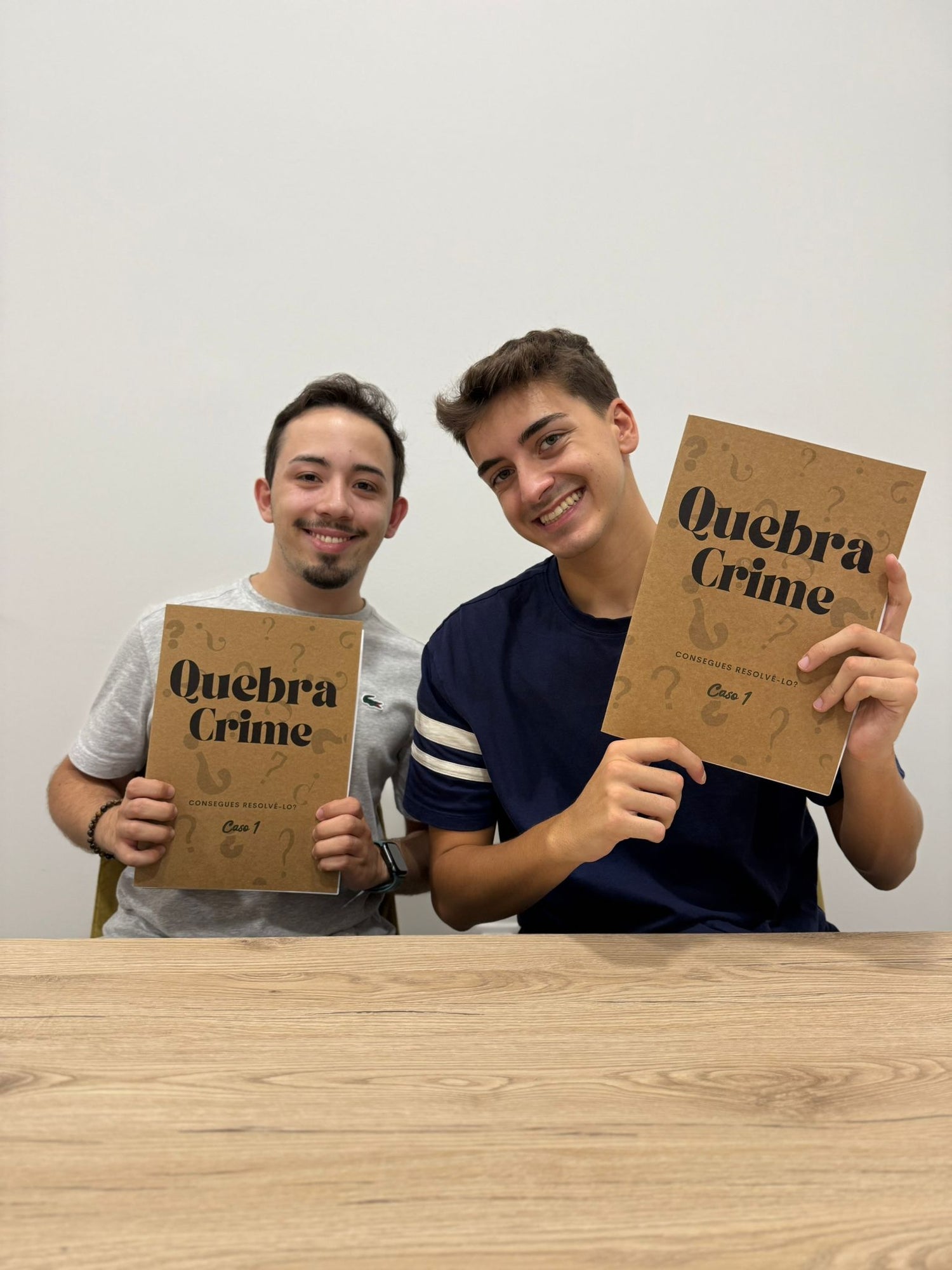 Somos o David e o Tiago, que, com 22 e 23 anos, criamos a Quebra Crime, uma marca dedicada a jogos criminais e de mistério. Já somos amigos há alguns anos, mas foi só em setembro de 2023 que a ideia de criar um projeto conjunto ganhou vida. A verdade é que o trabalho “a sério” muitas vezes roubava o nosso tempo, até que tivemos de abdicar de momentos com a família e amigos para criar algo maior. O resultado? Um projeto que nos enche de orgulho e que esperamos que te deixe tão entusiasmado como nos deixou a nós! 😄